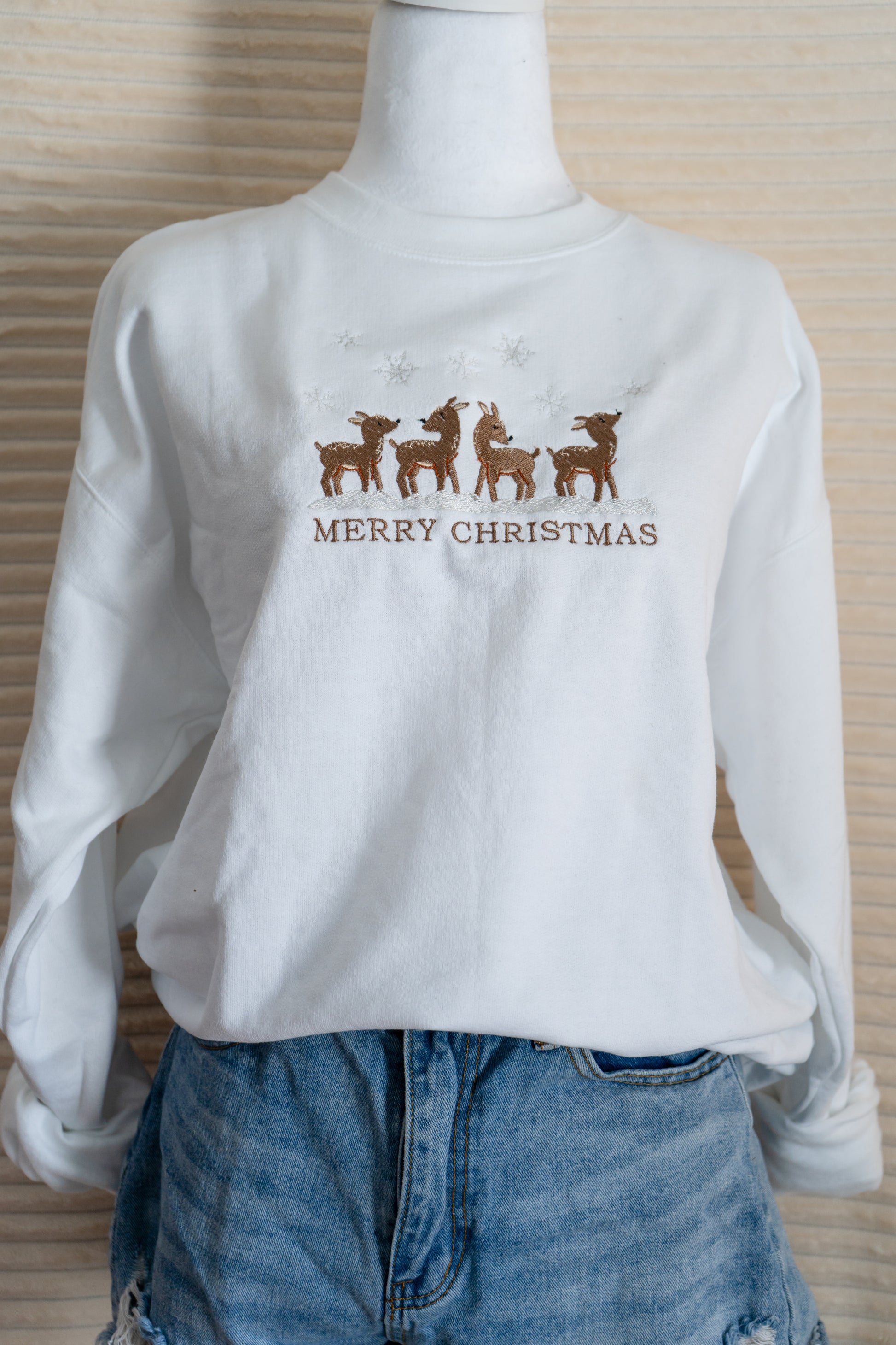 This is is our Merry Christmas reindeer shirt celebrate the holidays with our adorable reindeer, avalible in multiple styles and colors, if you don't see a size or color that you want please feel free to contact me to see what we can do!