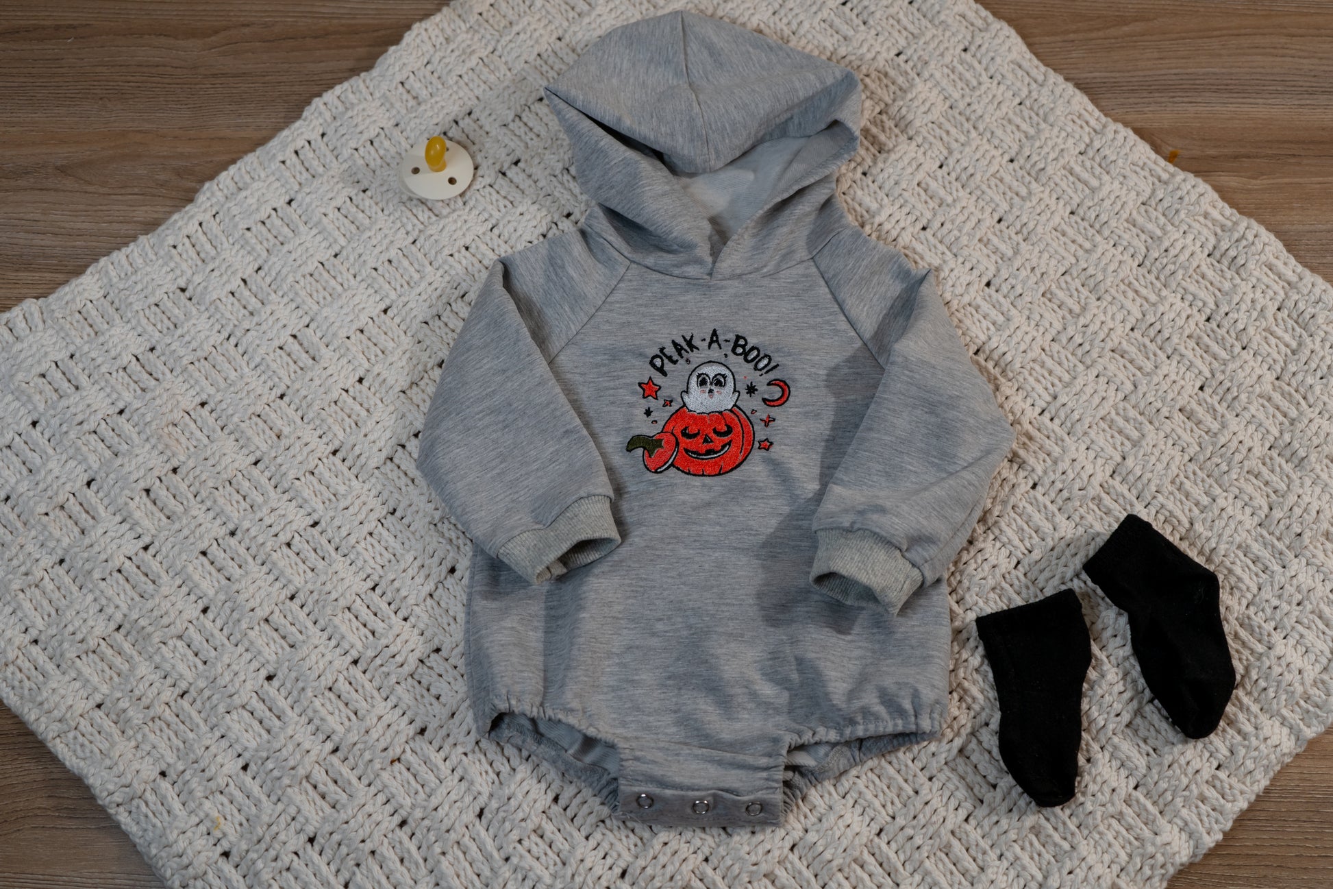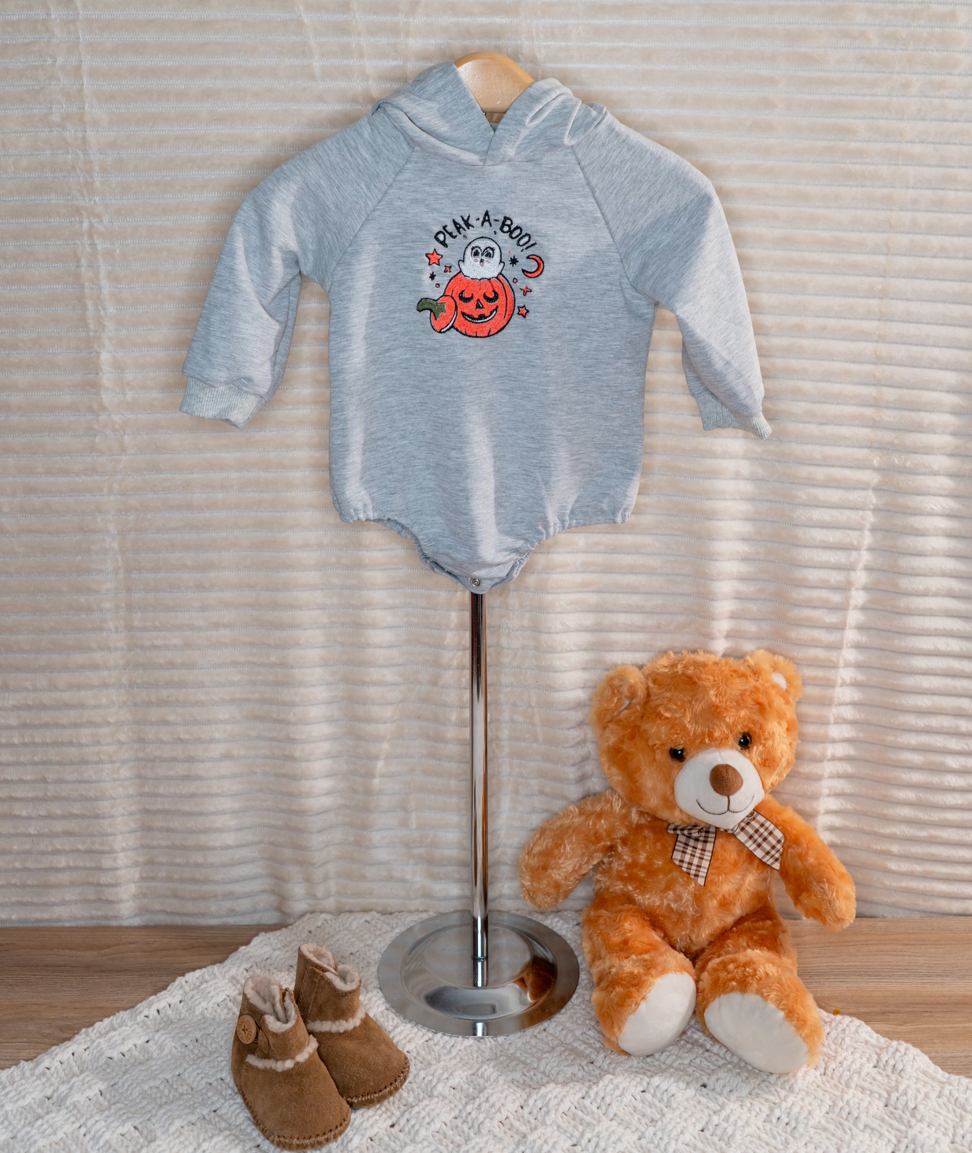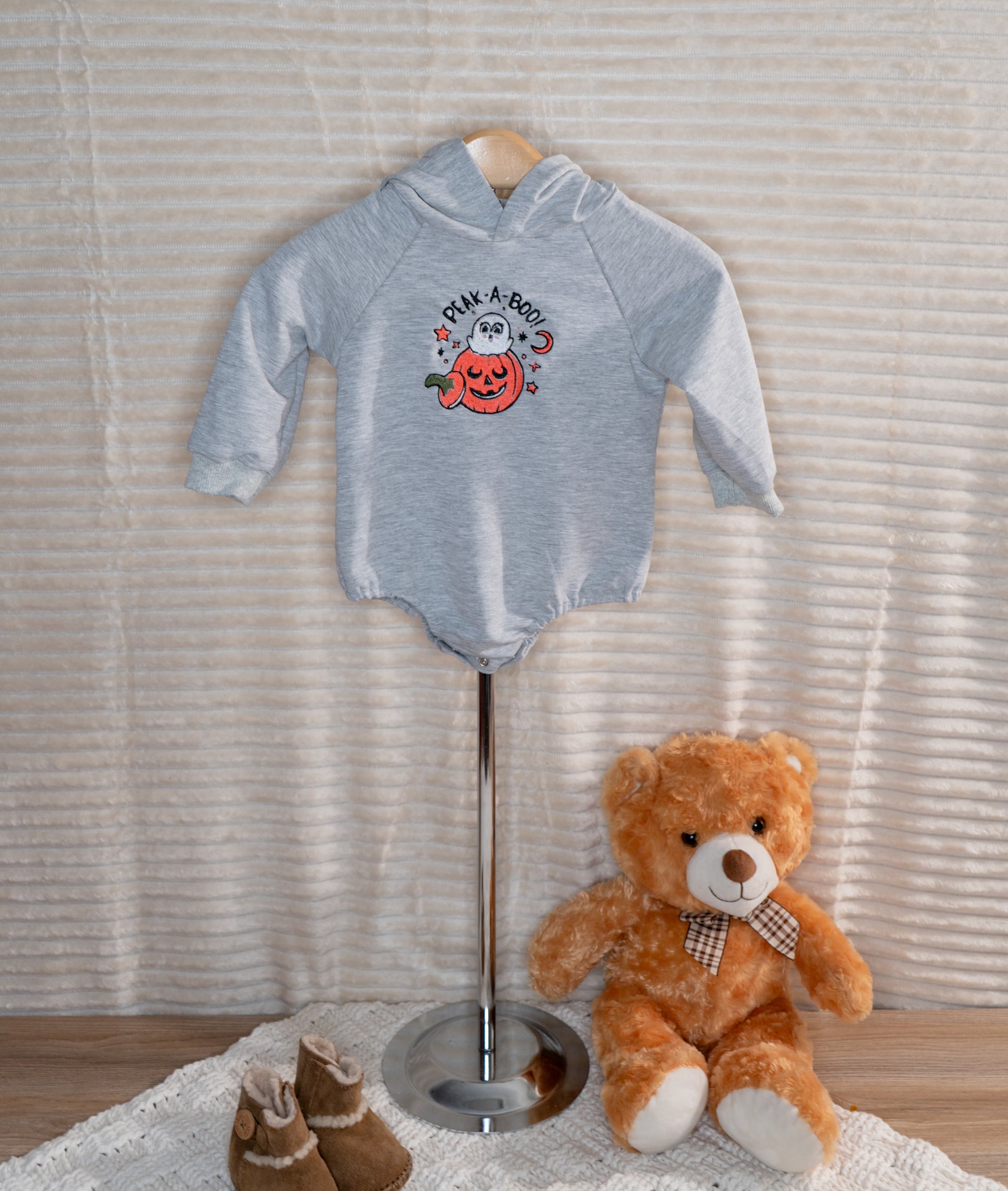 this is our peak-a- boo hoodie perfect for your sweet baby this fall, avalible in multiple styles, colors, and sizes, if you don't see a size that you want please feel free to contact me to see what we can do!